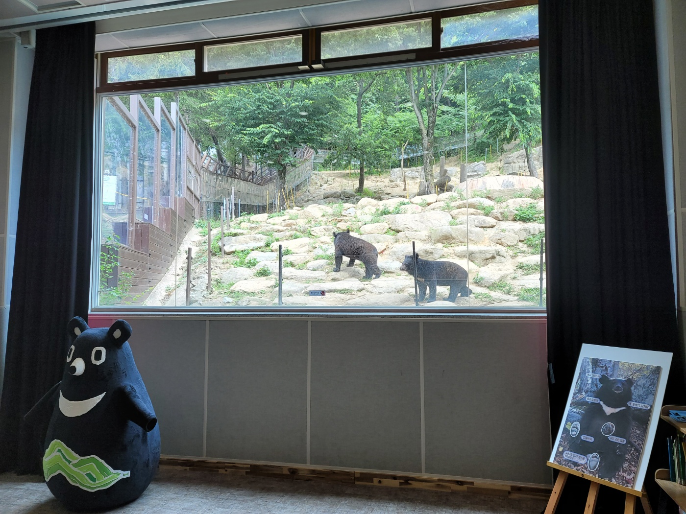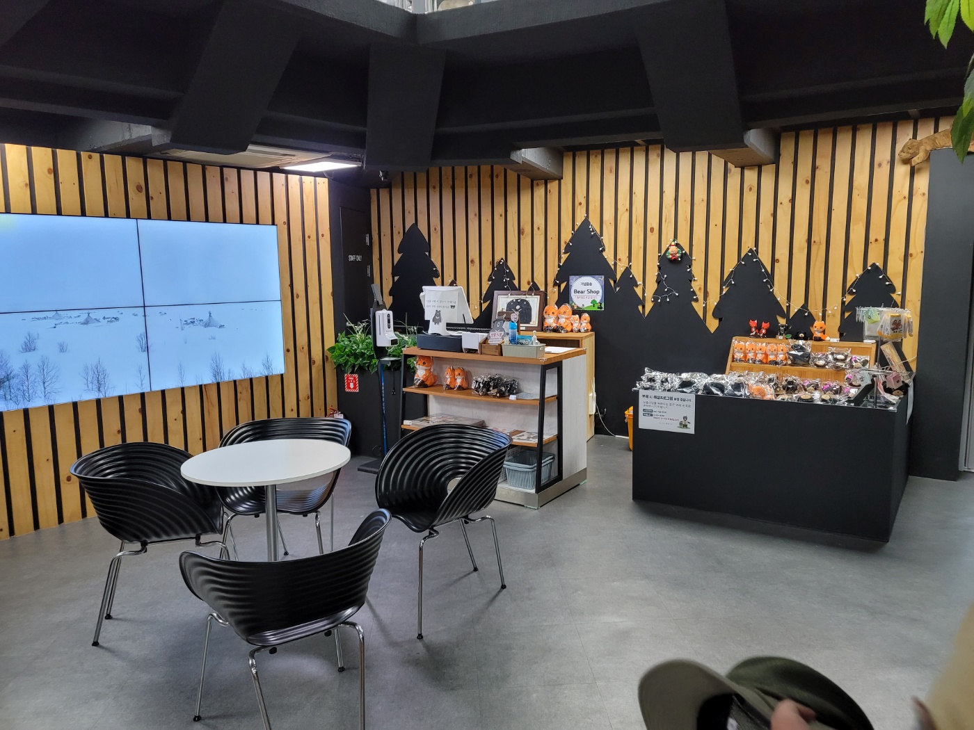 다시 실내로 돌아와 기념이 될 수 있는 사진을 찍어 주셨습니다. 또 2층에 올라가 보면 오늘 배웠던 반달가슴곰의 특징과 이야기들을 알기 쉽게 전시해 두었습니다. 1층에서는 기념품을 파는 곳도 있었답니다. 선물로 식물을 키울 수 있는 키트를 주셨어요. 총시간은 1시간 정도 진행된 것 같습니다.