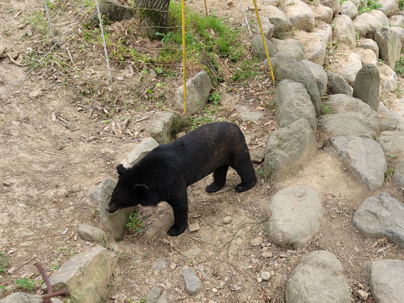 해설사의 소개가 끝나고 커튼이 쫙 열리면서 아기 반달가슴곰이 보였습니다. 커튼 뒤에 반달가슴곰이 있을 거라고 생각하지 못했는데 깜짝 놀랐어요! 자연에 적응하기 위해 보호받고 있는 아기 반달가슴곰에게 과일을 주니 서서 받기도 하며 맛있게 먹는 모습을 볼 수 있었습니다.