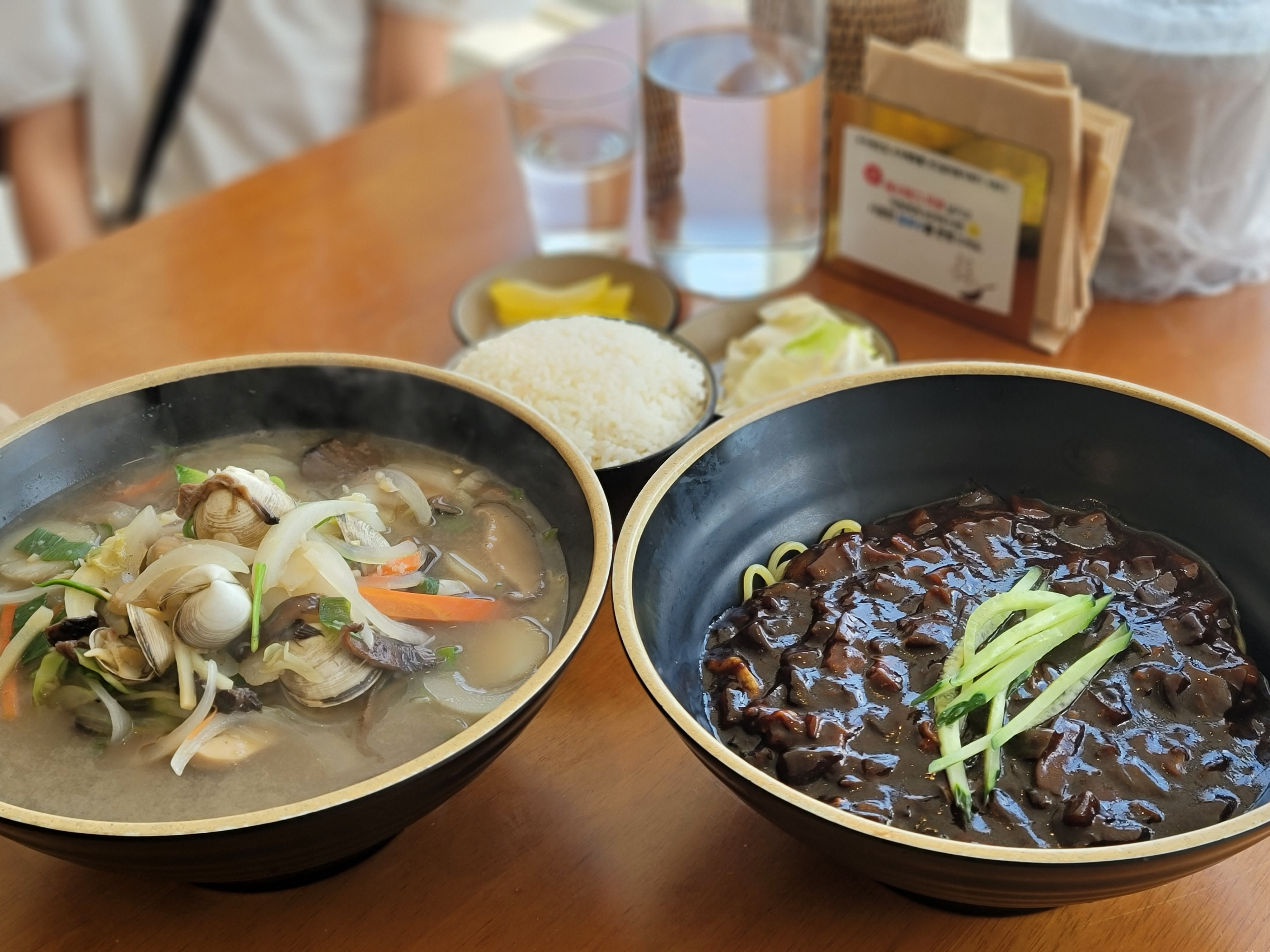 하얀 국물 베이스의 능이짬뽕을 시켜보았어요. 조개와 능이 버섯이 듬뿍 들어가 있었답니다. 국물도 너무 시원했어요!