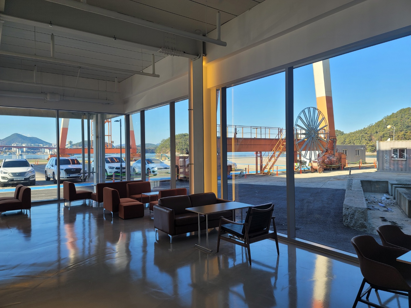 입구에 들어서면 보이는 크레인이 세웅해양플랜트의 흔적입니다. 거대한 조형물처럼 느껴져서 시선이 가더라구요. 과거와 현재가 공존하는 특별한 공간이네요.