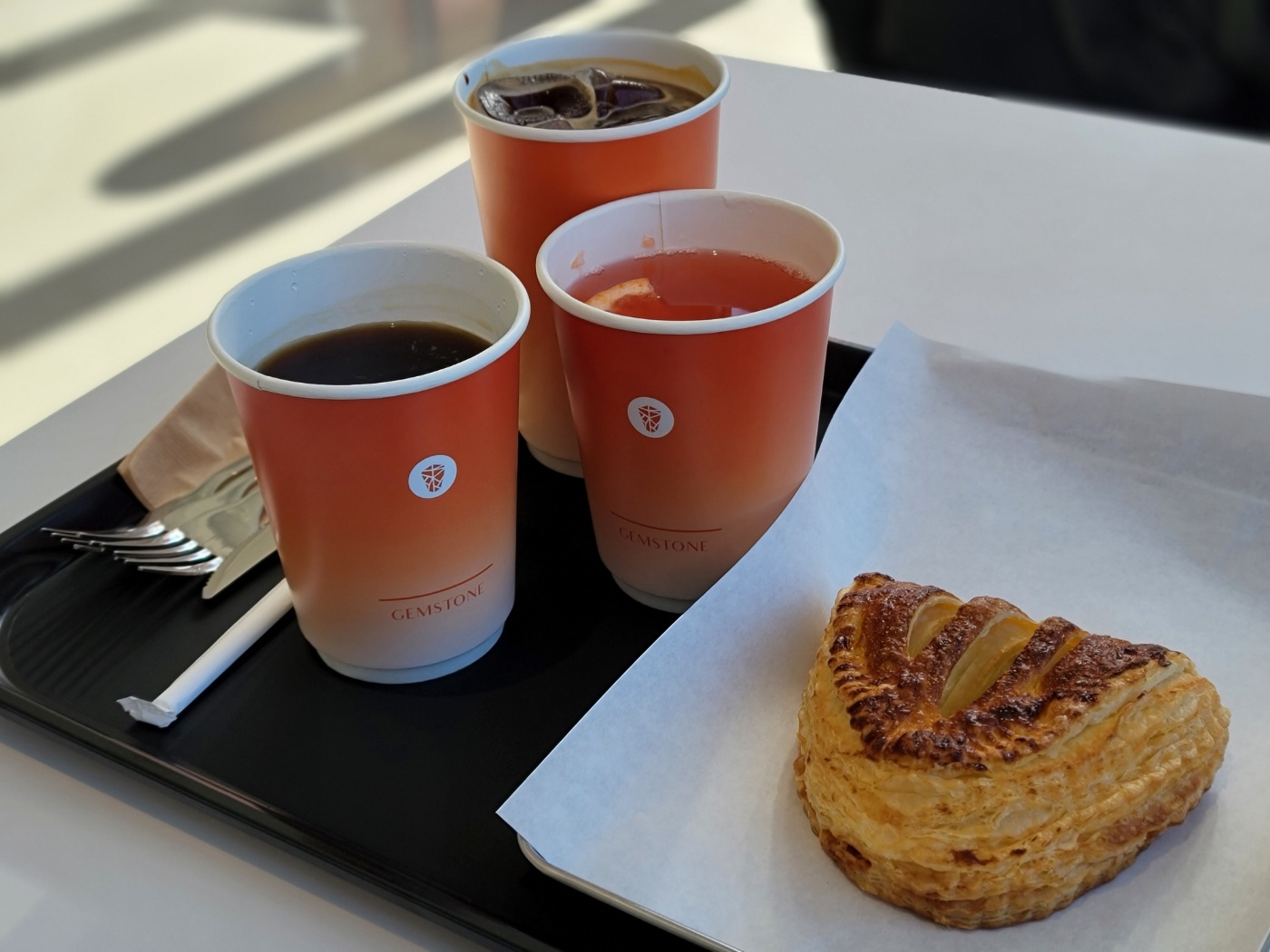 코로나가 한참일 때 방문이어서 그런지 매장안에서 마시는데도 종이컵에 주십니다. 자몽차는 생각하는 딱 그 정도입니다. 커피는 진하고 맛있었답니다. 달콤한 사과파이랑 잘 어울렸어요.