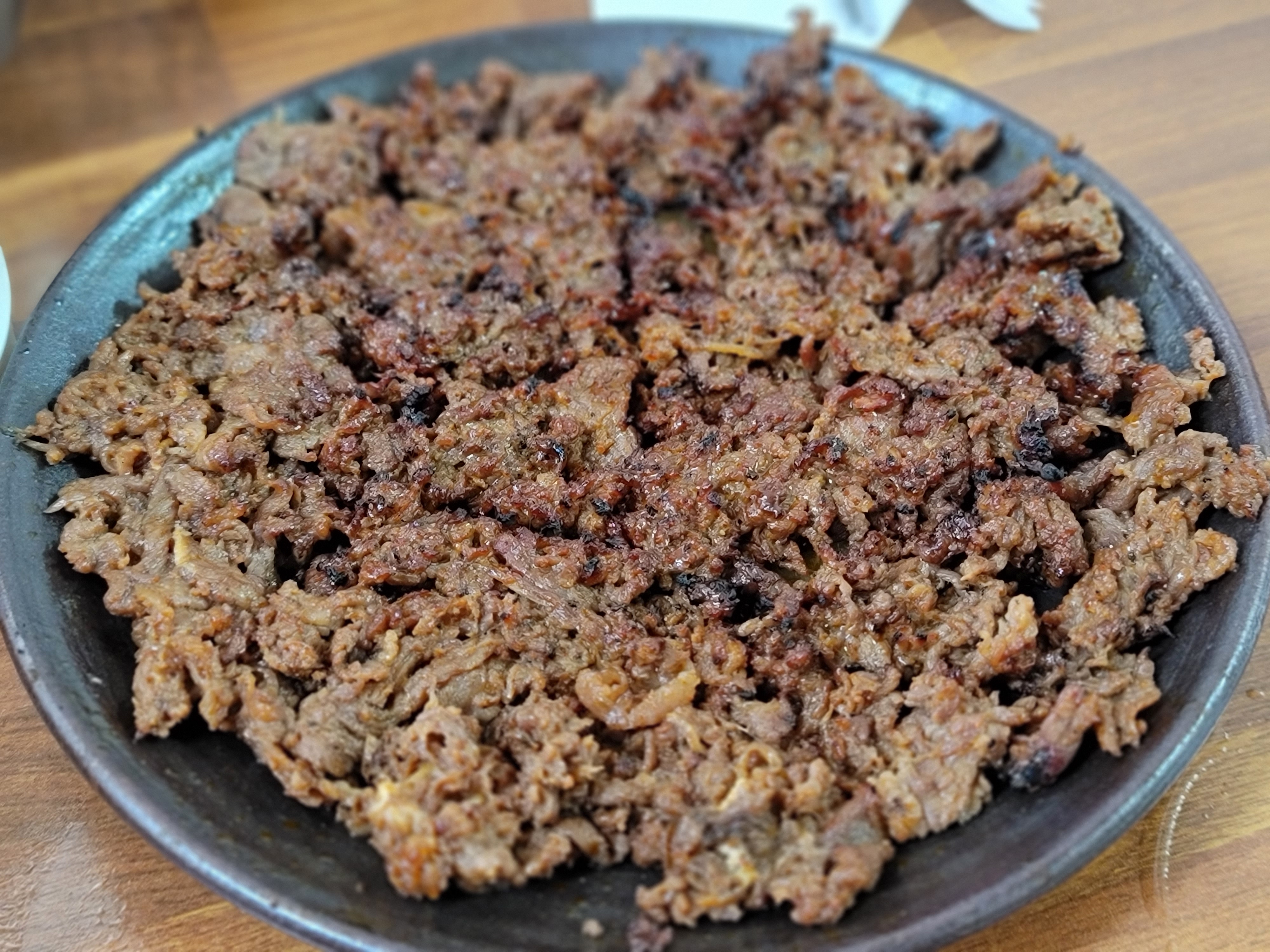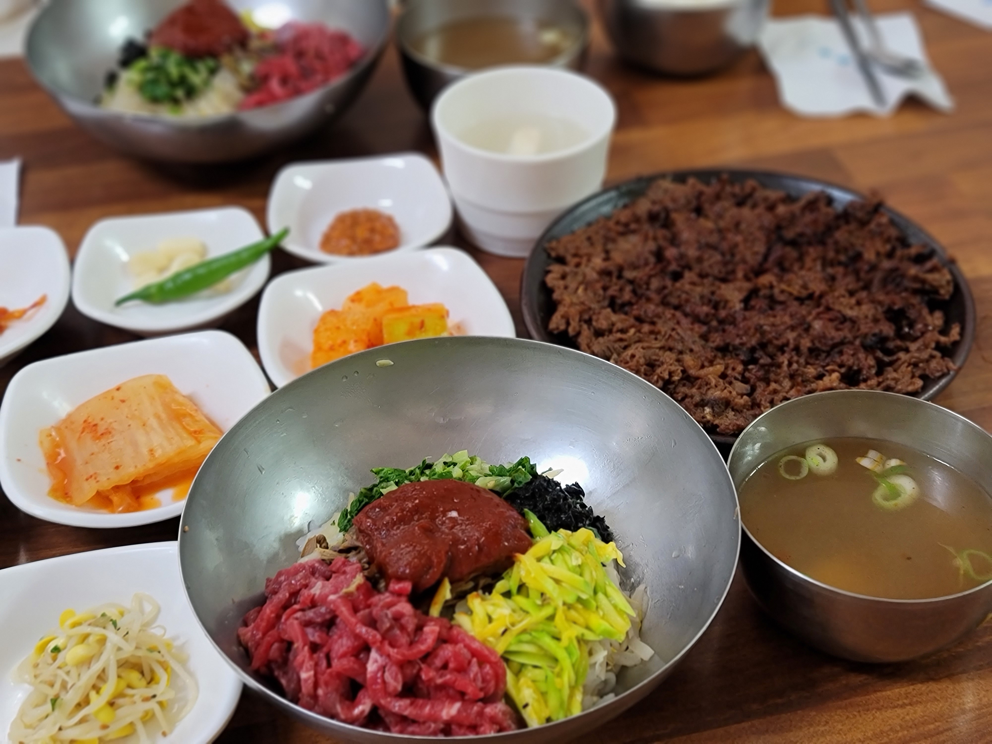 세 명이서 육회비빔밥 두개와 불고기, 밥을 추가해서 먹었답니다. 육회비빔밥을 시키니 선지해장국이 조금 나왔는데 너무 맛있었어요. 오전에만 판매하는 해장국에 대한 기대가 엄청 높아졌답니다. 다음에는 꼭 오전시간에 들러 아침메뉴를 먹고 싶은 생각이 들었습니다.