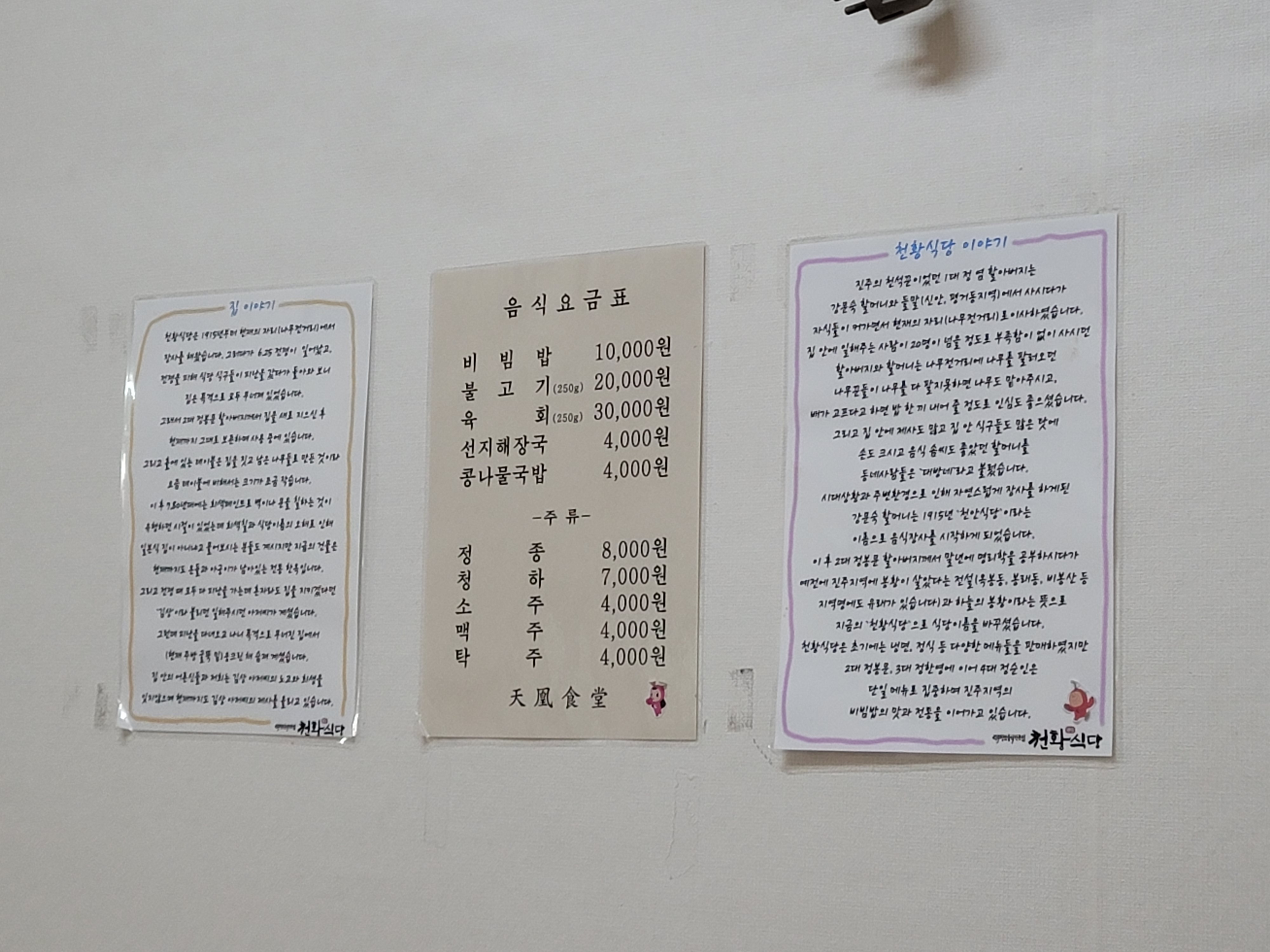 진주여행 중 중앙시장 쪽을 지나가다가 맛있는 집을 발견했답니다. 백종원의 3대 천왕에도 소개가 되었구요. 생활의 달인, 모닝와이드에서도 진주 비빔밥으로 소개가 된 아주 유명한 집이었답니다. 천왕식당은 1915년부터 장사를 시작해 온 아주 오래된 식당이었습니다. 과거에 어려운 상황에서 자연스럽게 장사를 시작하였어요. 처음에는 천안식당으로 시작했다가 이후에 진주에 봉황이 살았다는 이야기를 듣고 하늘의 봉황이라는 뜻으로 지금의 이름이 지어졌다고 하네요. 아주 오랜 기간 동안 많은 사람들에게 사랑받은 천황식당은 진주지역에서 손꼽히는 비빔밥 맛집입니다.