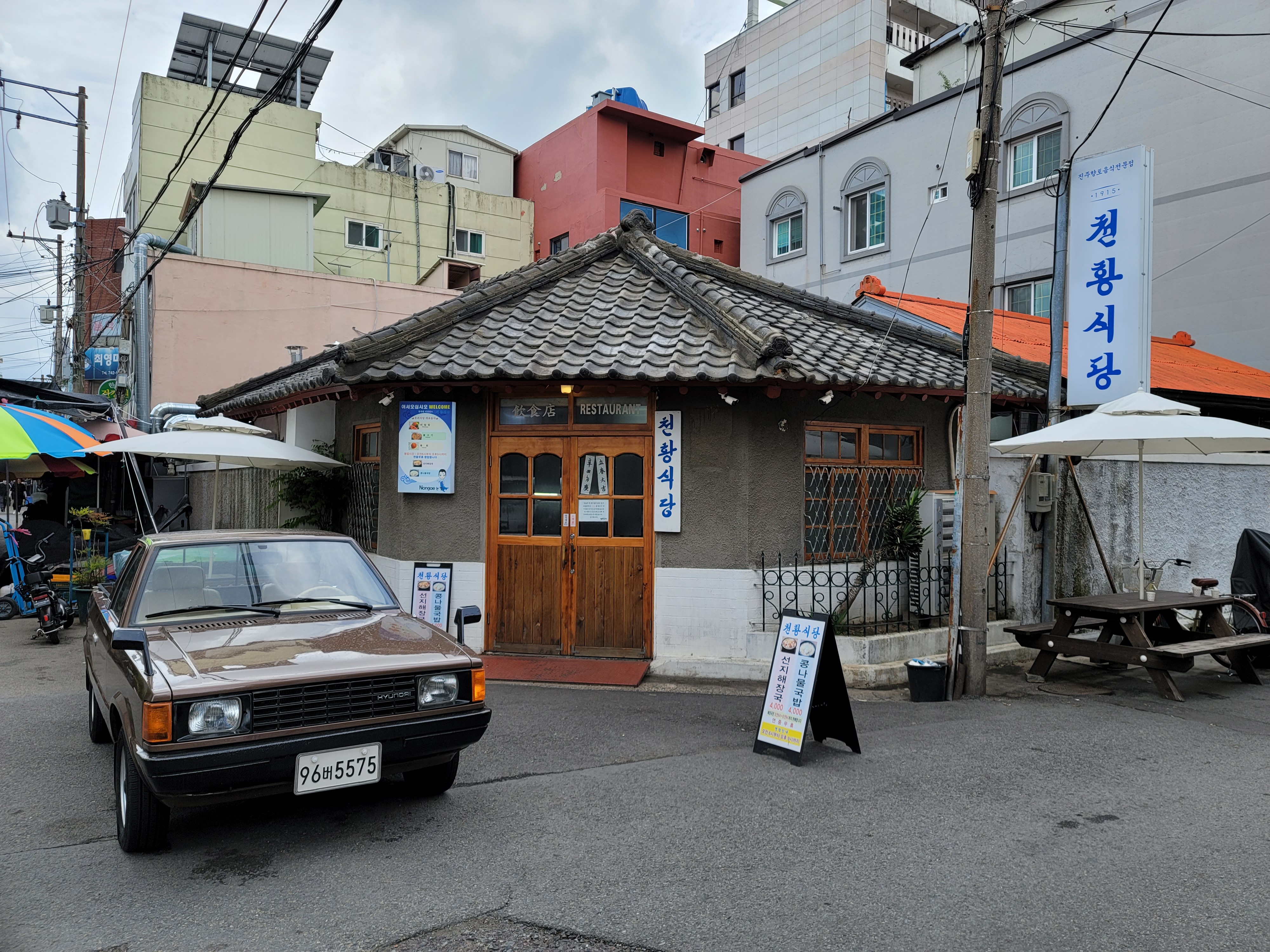 아주 오래된 가게의 느낌을 주는데 한몫 하는 자동차입니다. 건물 외관도 오래된 건물에 조금씩 손을 보며 장사하는 것 같아요 ㅎㅎ