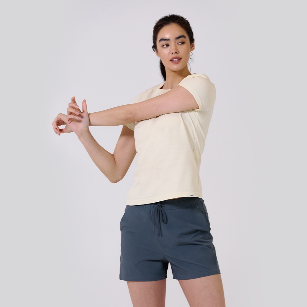 이름에서 느껴지는 것처럼 시원하게 입을 수 있는 기본 스타일의 숏슬리브입니다. 허리에 라인이 살짝 들어가 있어 허리라인을 잡아주는 것이 특징이네요. 슬림핏으로 물구나무서기를 할 때나 숙이는 동작에서도 몸에 잘 밀착되는 기본 스타일이랍니다.